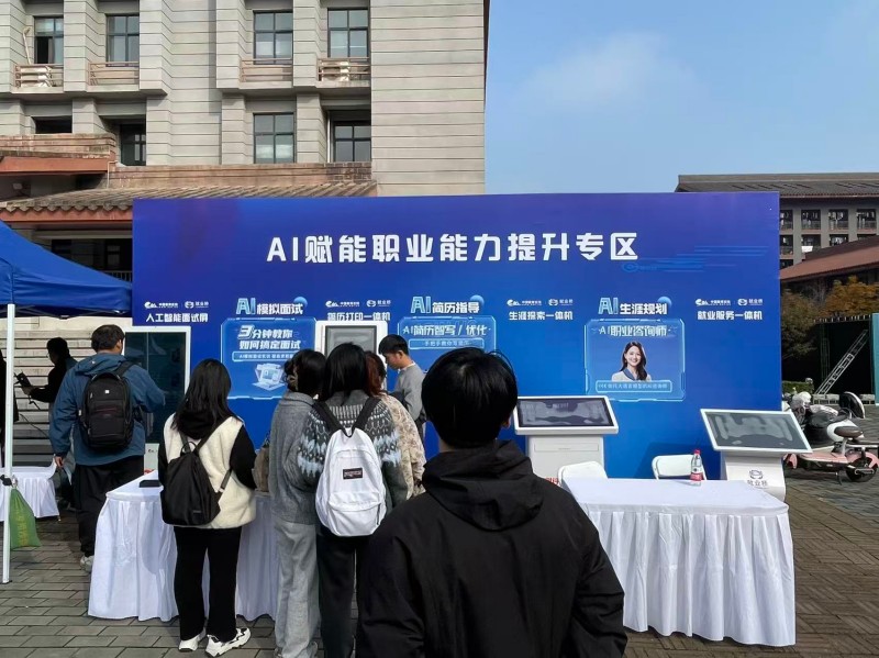值得关注的是,本次双选会创新性地引入了由中国教育在线·就业桥提供的智能就业服务系统。该系统由四台智能化设备组成:人工智能面试模拟设备采用数字人面试技术,支持多行业岗位模拟及智能追问功能;智能化简历生成设备集成简历自动生成与优化系统,具备智能撰写、模块管理等功能;职业生涯规划设备搭载职业测评系统,可提供个性化职业发展建议;就业信息服务设备则整合了实时招聘信息数据库,实现人岗精准匹配。这些智能化设备的协同应用,构建了从职业规划到岗位匹配的完整就业服务体系。